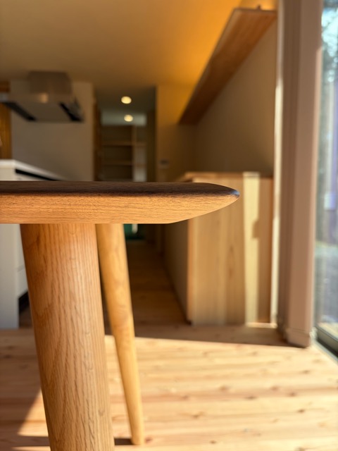 先日完成したお住まいでは、そんな無垢床と共に時を刻む家具として、ダイニングテーブルとチェアをお迎えしました。