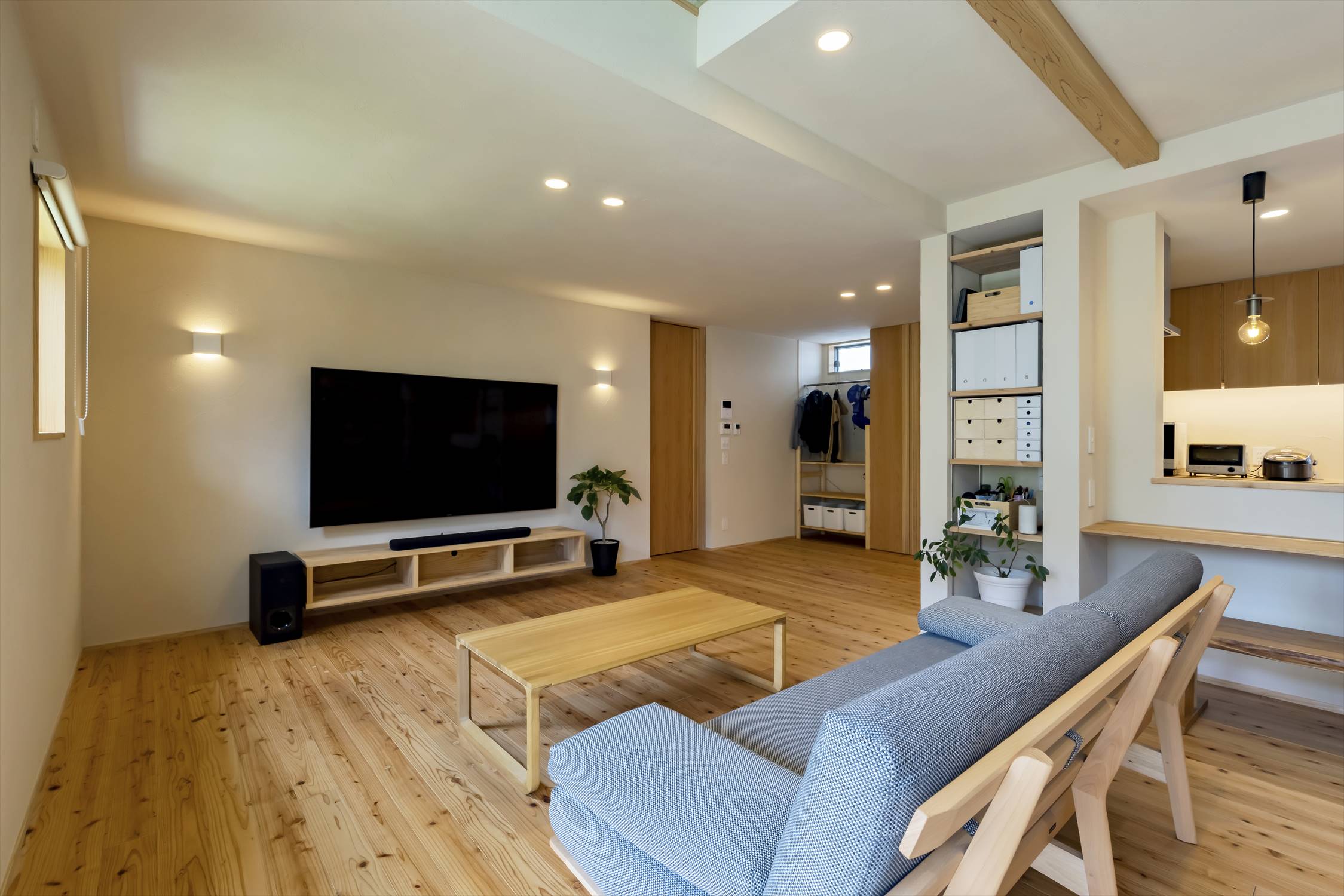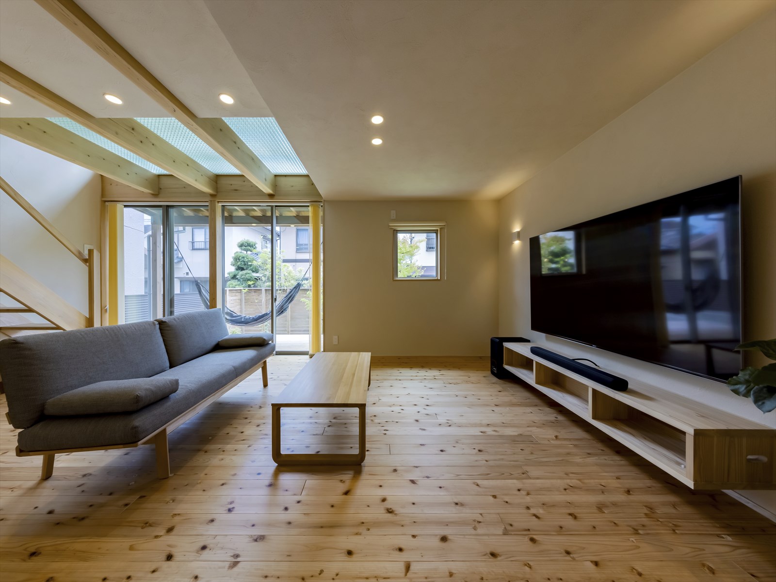 お施主様が望まれたのは、飾らず、自然体で心地よく過ごせる暮らし。その思いに寄り添い、私たちは「暮らしを作る」という視点から、家と庭がひとつにつながる空間を丁寧に設計しました。