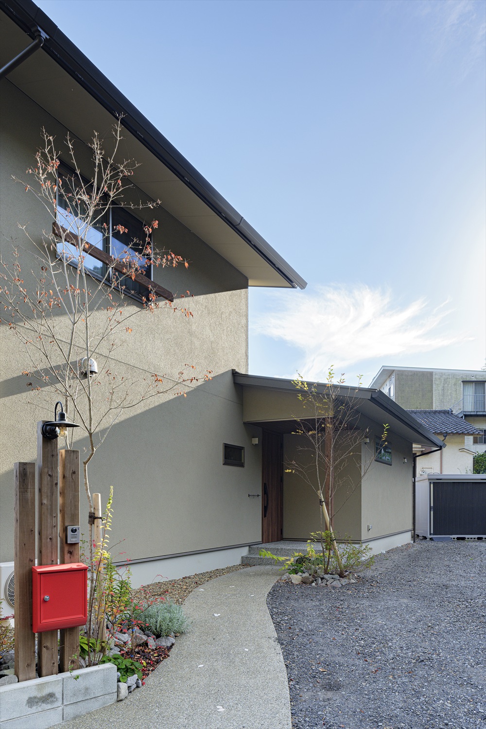 閑静な住宅地でありながら、他人の目を気にせず周辺の景色を取込み、お庭の自然を感じながら、日向ぼっこを愉しむ素敵なお家が完成しました。