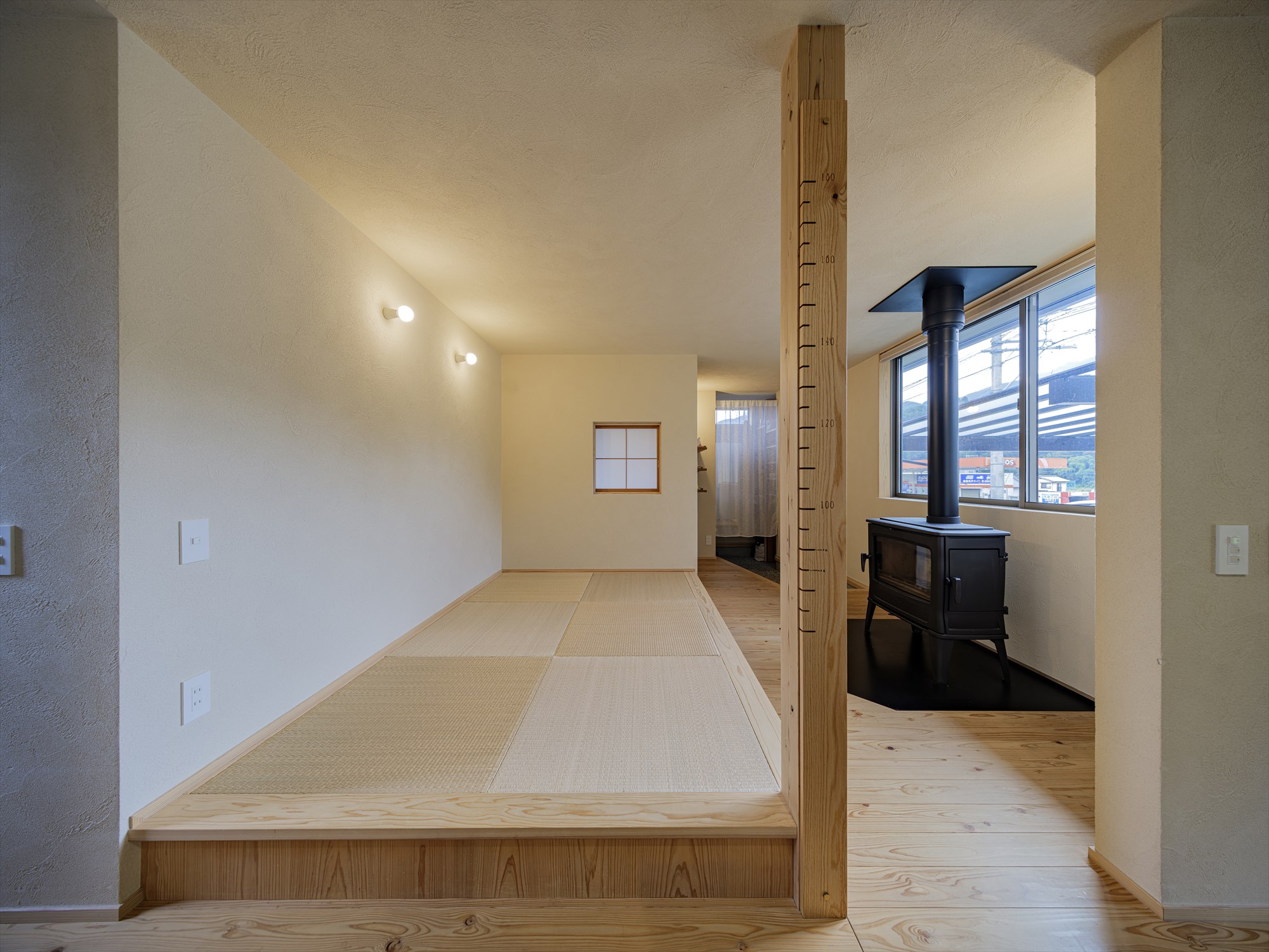 床板は杉の無垢材、壁は珪藻土の塗り壁、畳は藺草で編んだ七島藺、そして暖房は薪ストーブと、手に触れ肌で感じるものには、徹底して『本物』にこだわりました。